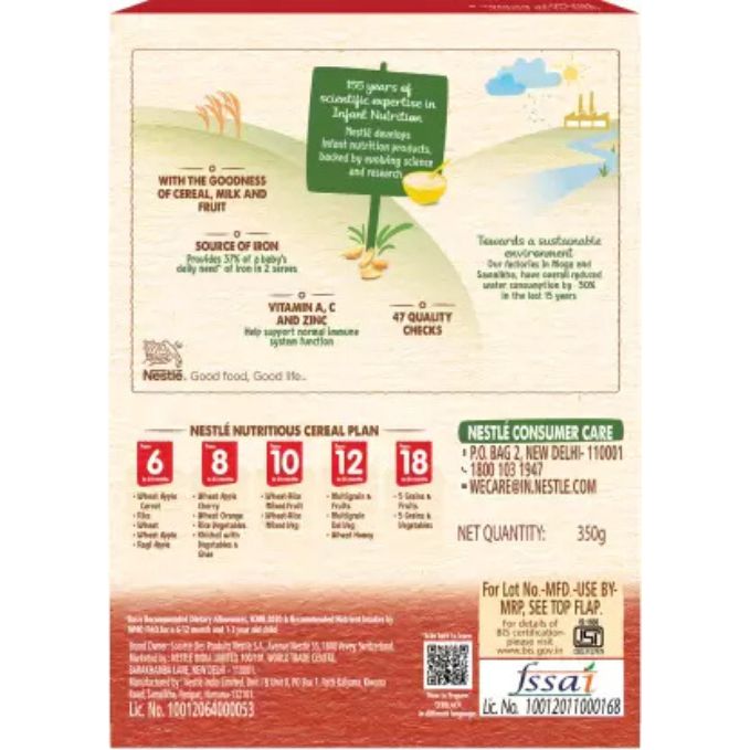 - WHEAT APPLE BABY CEREAL: Rich in Iron baby cereal for babies from 6 to 24 months ESSENTIAL NUTRIENTS FOR GROWTH: A source of 14 important nutrients including vitamins and minerals RICH IN IRON: Provides 37% of a babys daily need of iron in 2 serves GOODNESS OF HEALTHY INGREDIENTS: Comes with the goodness of cereal, milk and fruits IMPORTANT NOTICE: Mothers milk is best for your baby